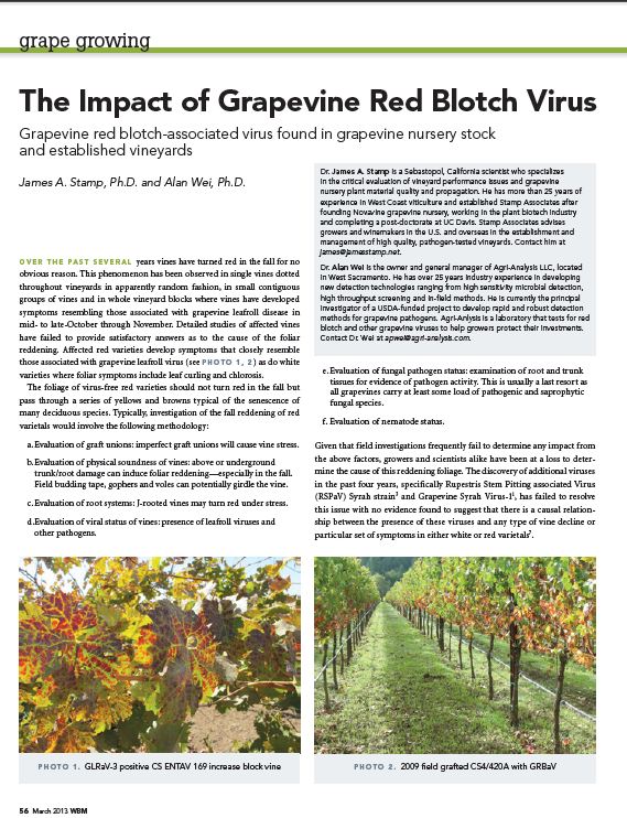stock selection and vineyard performance issues to virus testing